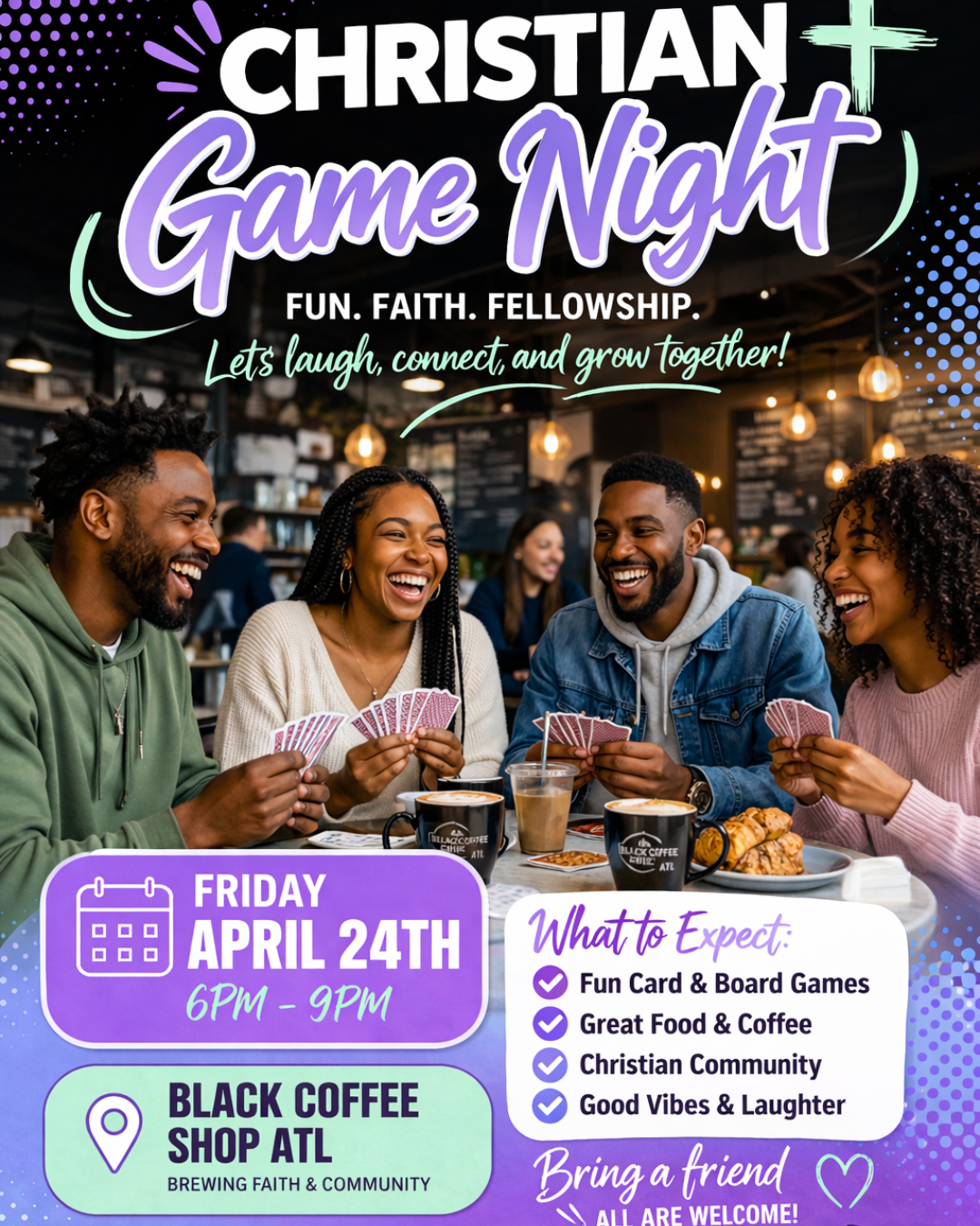 Join us for a night of laughter, connection, and community at Black Coffee Shop ATL! Whether you're a trivia champ, a Jenga legend, or just here for the coffee and community, all are welcome! Bring a friend (or five)!